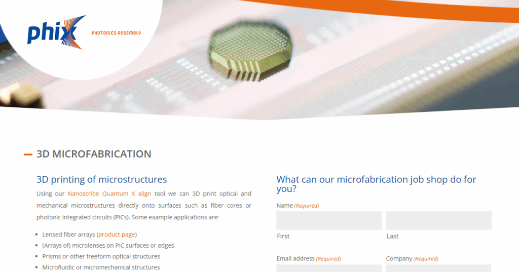 PHIX published a new blog post on 3D Microfabrication!Using our Nanoscribe Quantum X align tool, we can 3D print optical and mechanical microstructures directly onto fiber cores and photonic integrated circuits. From microlens arrays and prisms to microfluidic structures, this process achieves 100 nm resolution with optical-grade quality, enabling fully customized optics. 👉 You can read […]